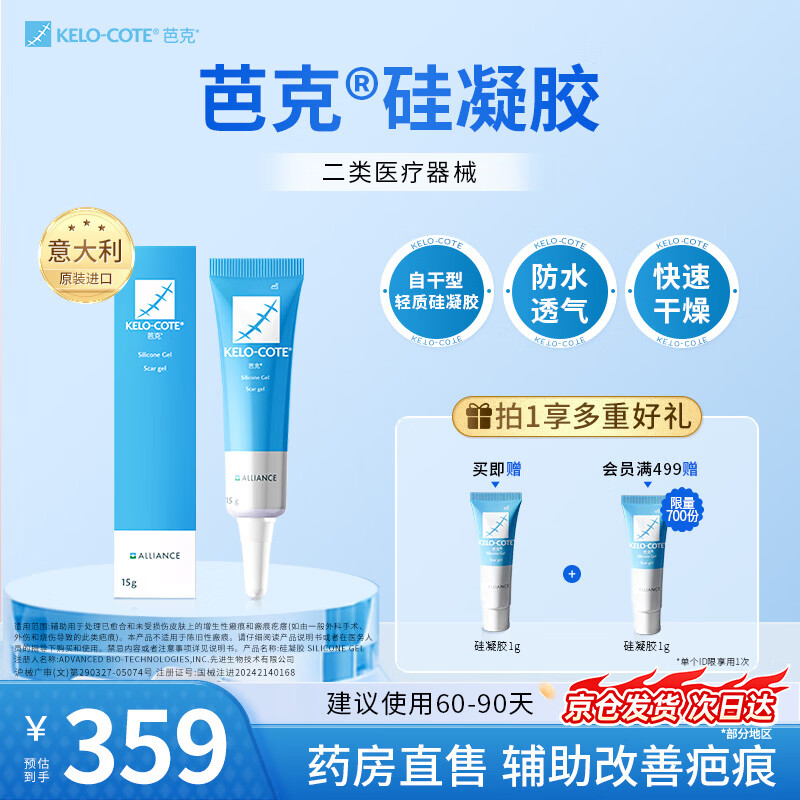 ¥329 芭克kelocote官方硅凝胶巴克疤克去疤祛疤膏硅酮凝胶治疗修复改善疤痕 15g【经典爆款】 369