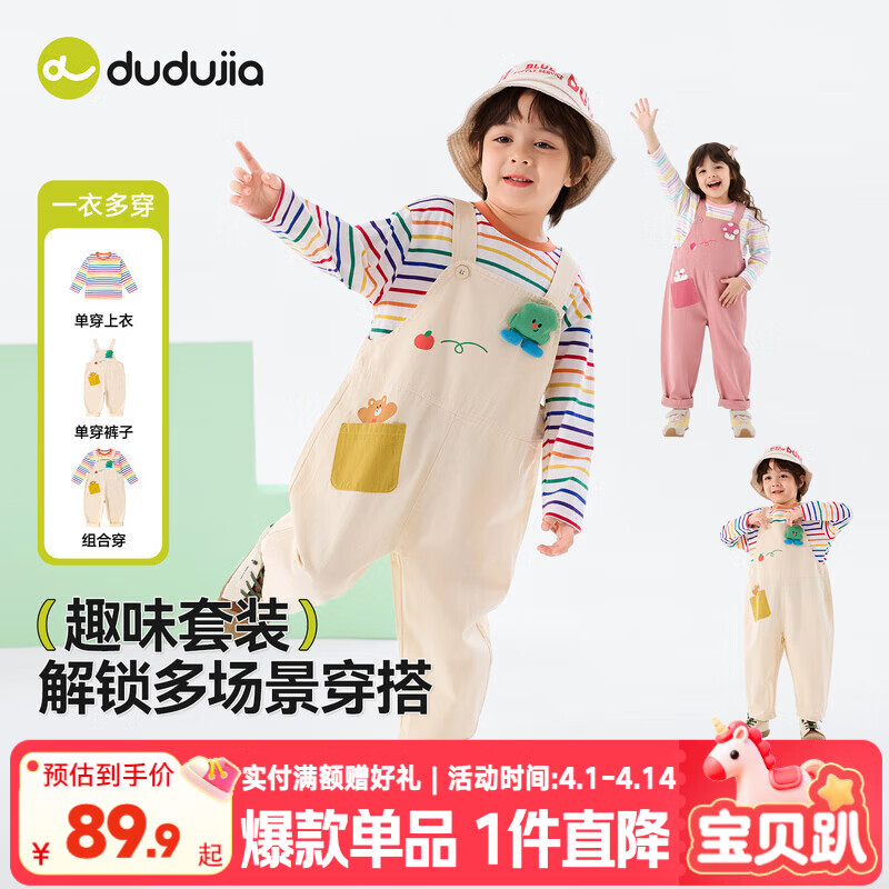 ¥87.9 嘟嘟家宝宝套装春季男童T恤背带裤两件套春款女童上衣裤子儿童衣服童装 奶油白 90 102.9