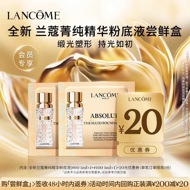 学生专享兰蔻菁纯粉底液等美妆大牌体验装,叠加21-20券超值入手