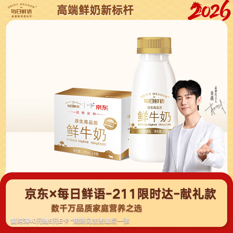 自营每日鲜语3.6g鲜牛奶211ml*6瓶Plus价仅30.9元