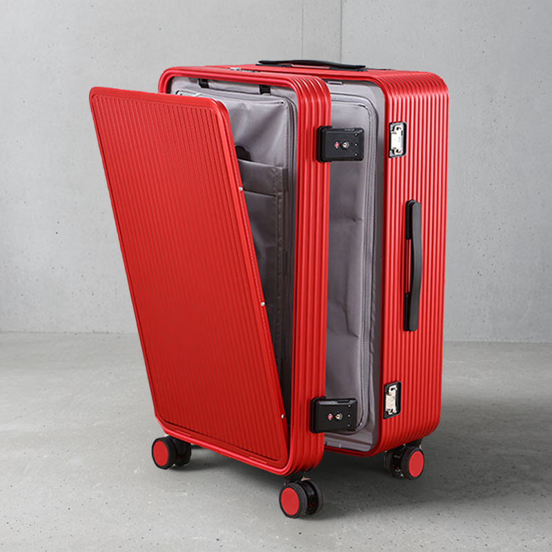 ¥1208 USHOW TRAVEL日本工艺金属拉杆箱旅行箱箱子男女硬箱金属箱密码箱前开口行李箱 红色前开+侧开升级版卡扣 20英寸 1258
