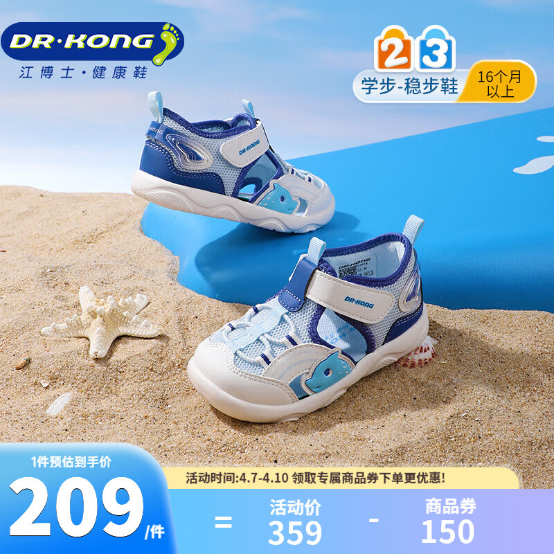 ¥209 江博士(DR·KONG)夏季男女童透气学步鞋 轻便休闲儿童凉鞋 蓝/米 23 脚长约13.7-14.3 359