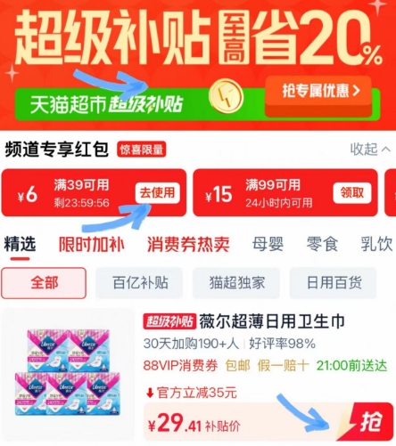 在售价99.9元,领15元券+4.9元礼金,商品页价格下拉详情页-超级补贴 跳转领39-6元券,页面下单,实付低至29.4元包邮;