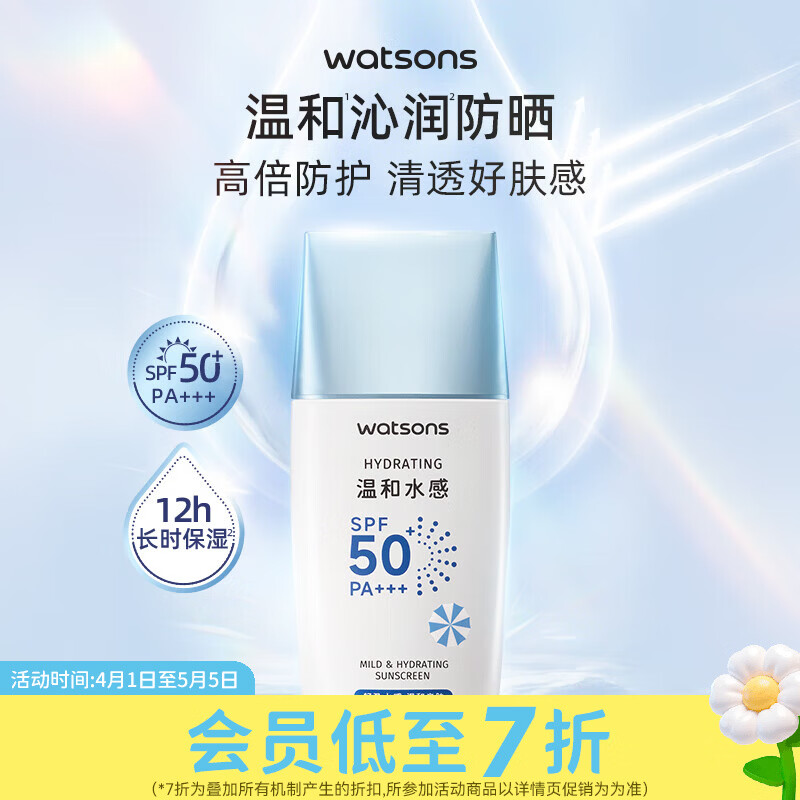屈臣氏防晒乳50g,领券后拍2件仅需58.2元