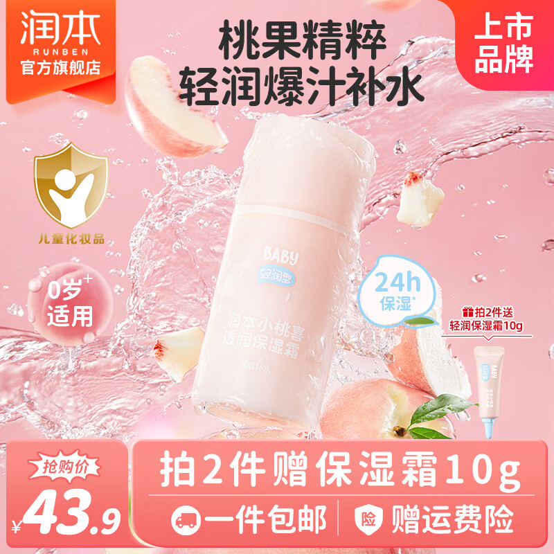 润本儿童小桃喜面霜75g,春夏清爽保湿,到手价29.27元