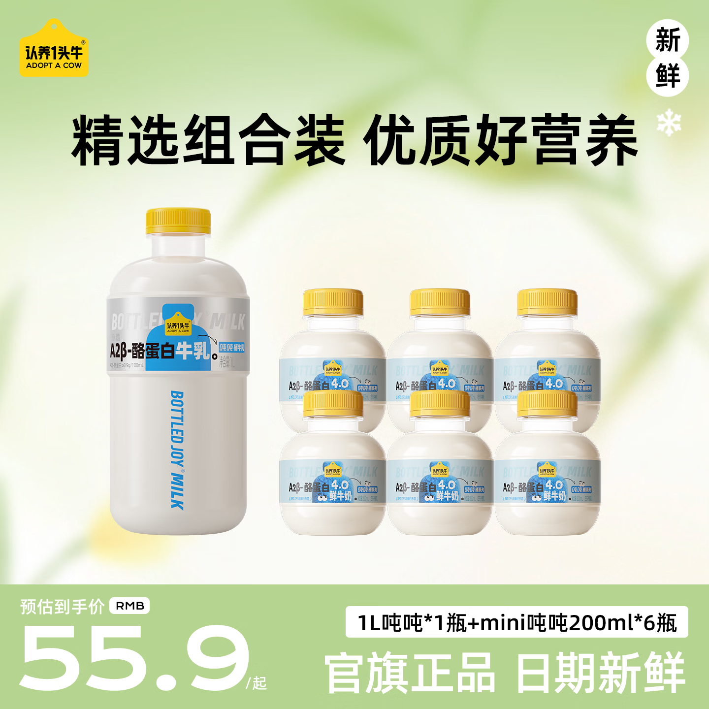 认养一头牛A2β鲜牛奶组合:1L+6瓶mini装,到手仅39.9元