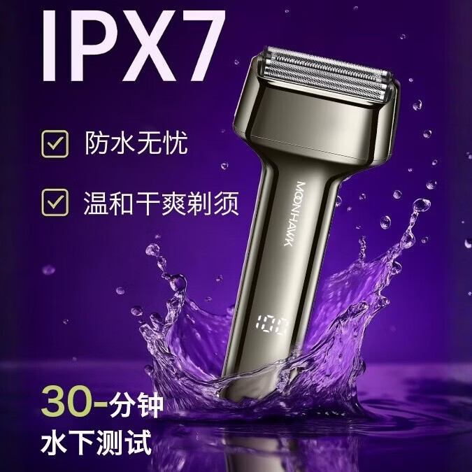 ¥68 月鹰(MOONHAWK)往复式剃须刀便携款电动剃须刀IPX7级防水智能刮胡子旅行便携(一日达) 银色 七级防水 旅行装天地盒 129