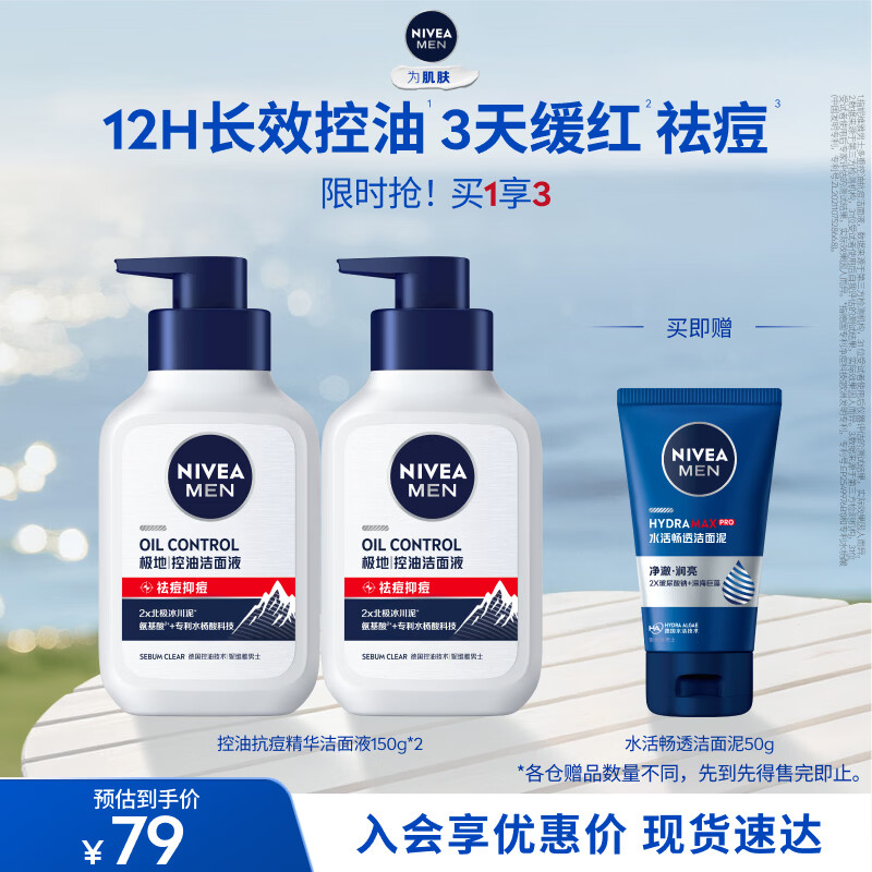 妮维雅男士控油洗面奶2瓶装 最终到手价49元