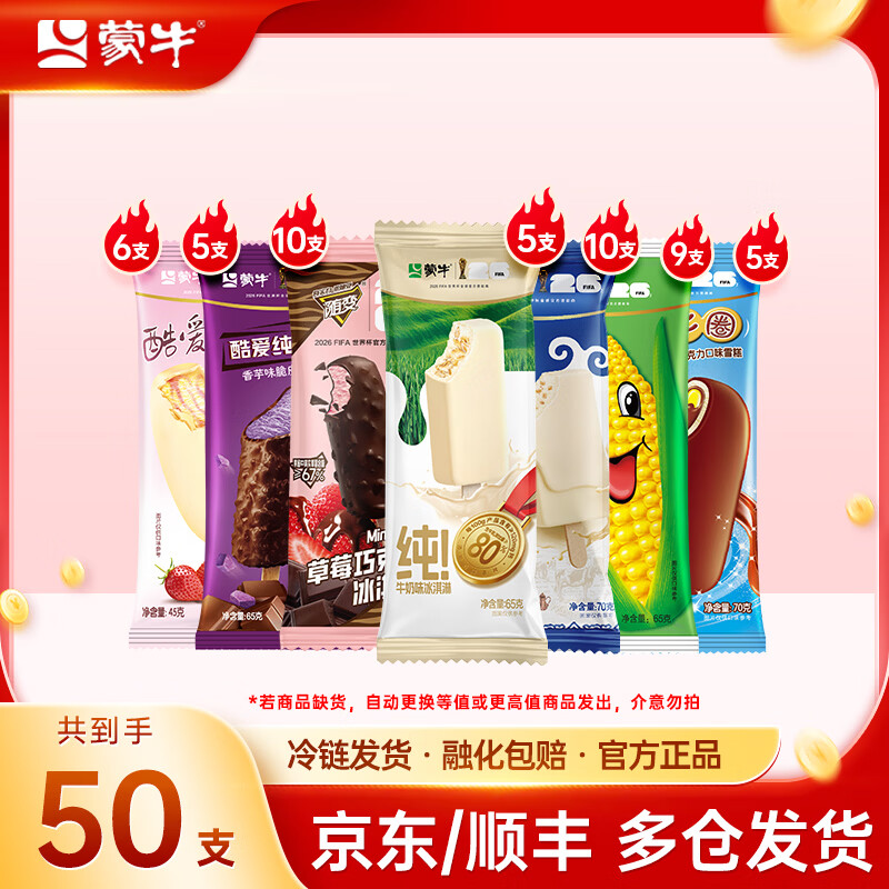 伊利巧乐兹全家福37支+赠迷你脆筒,到手仅51.9元折1.3/支