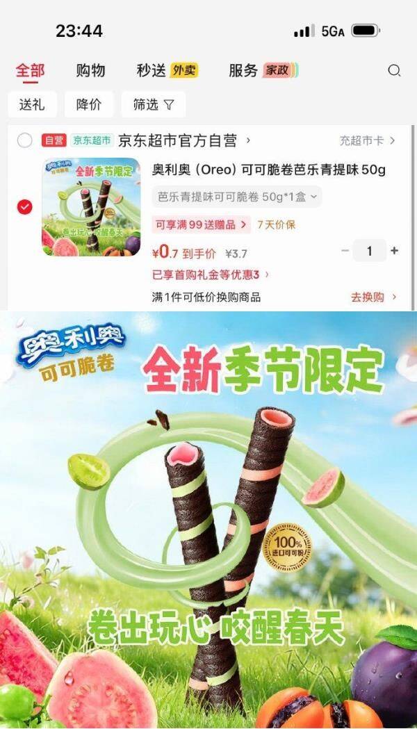奥利奥可可脆卷芭乐青提味50g首单仅需0.7元