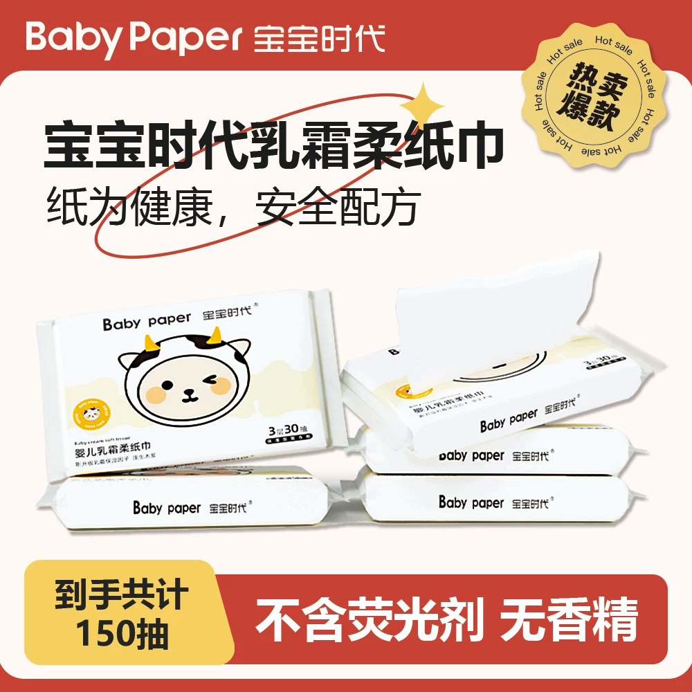 ¥1.99 宝宝时代乳霜纸5包*30抽*整提! 5.99