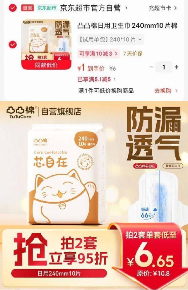 凸凸棉日用卫生巾240mm10片:学生专享5.1元到手