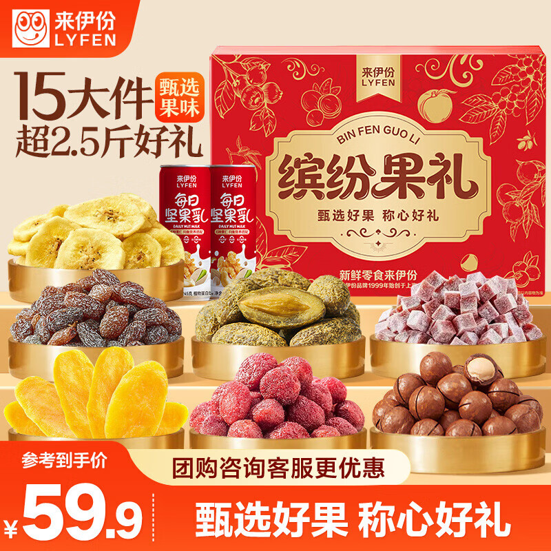 来伊份缤纷果礼1268g坚果蜜饯礼盒,到手价仅29.9元