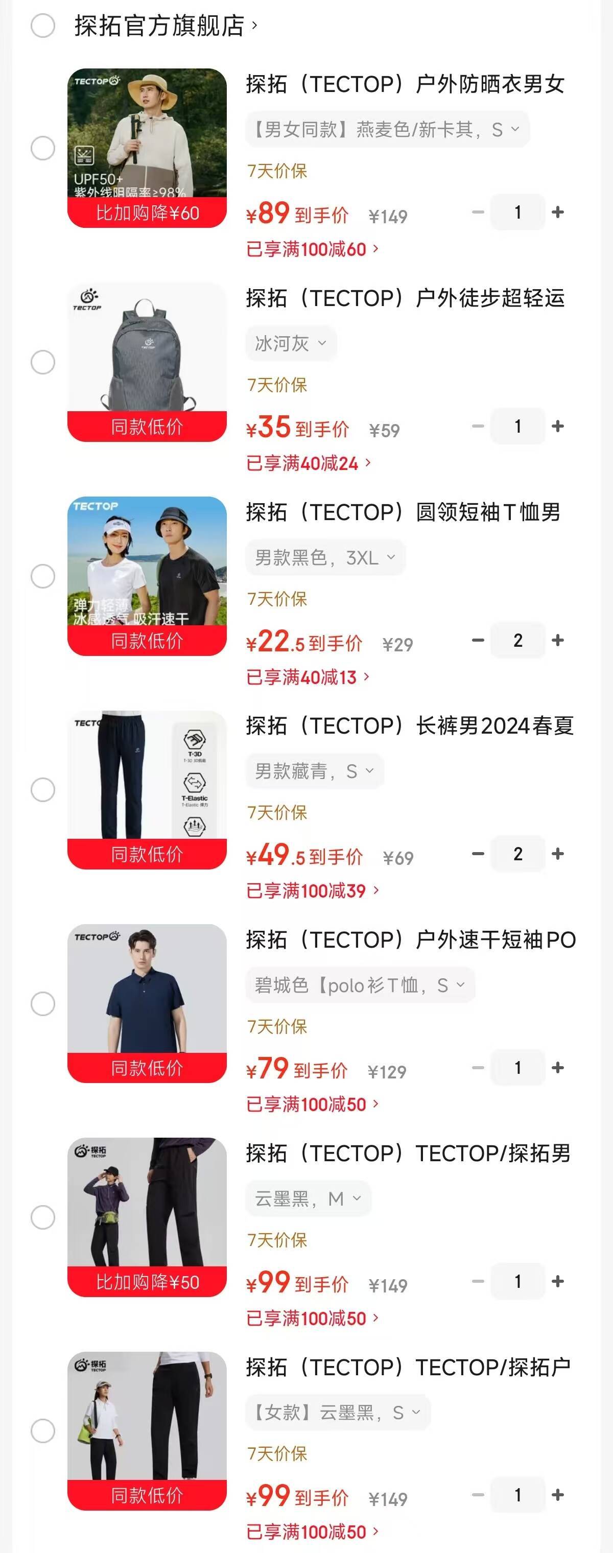 探拓速干短袖T恤低至22.5元,任选2件付45元起