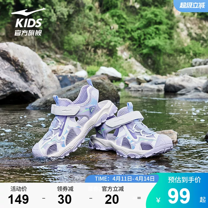 ¥89 鸿星尔克儿童运动凉鞋女童户外透气大童 129