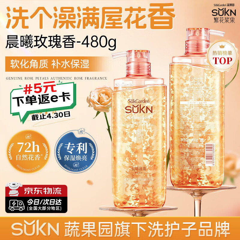 SUKN蔬果园玫瑰花瓣沐浴露480g 拍2件仅需59.8元