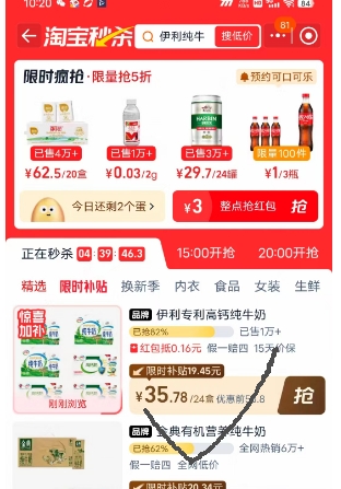 在售价58.8元,领10元券+3.41元礼金,商品页价格下拉详情页-淘宝秒杀 页面下单,实付低至35.8元包邮,生产日期2月,可以囤点慢慢喝,库存不多手慢无;