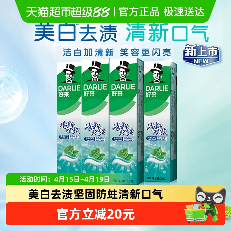 ¥8.68 DARLIE好来(原黑人)牙膏清新双效200g*4支 15.68