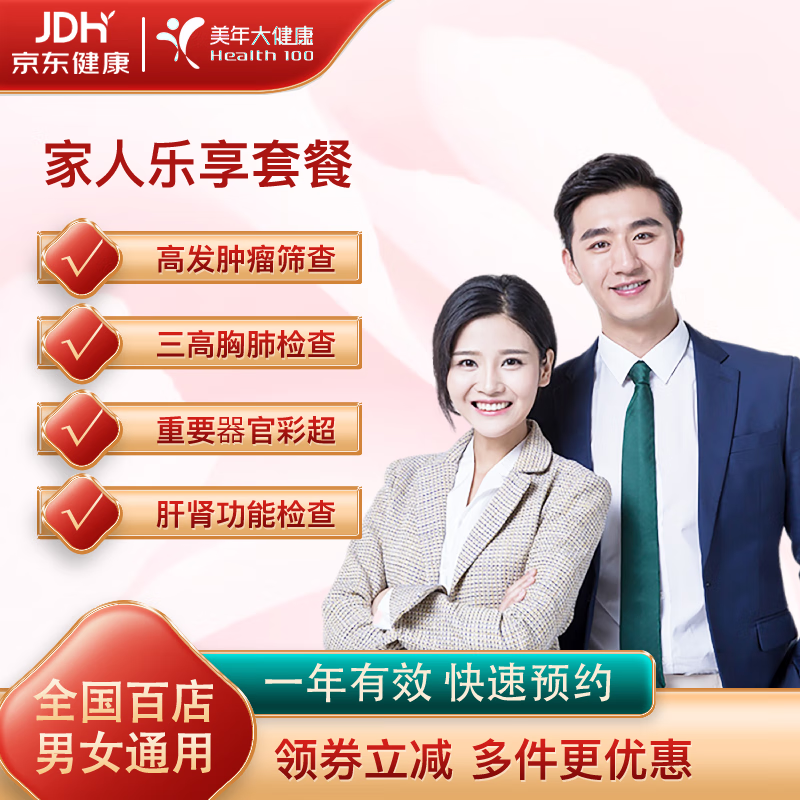 ¥300 美年大健康 体检套餐 女士男性青中老年人全国百店通用 乐享E套餐 电子卡密 800