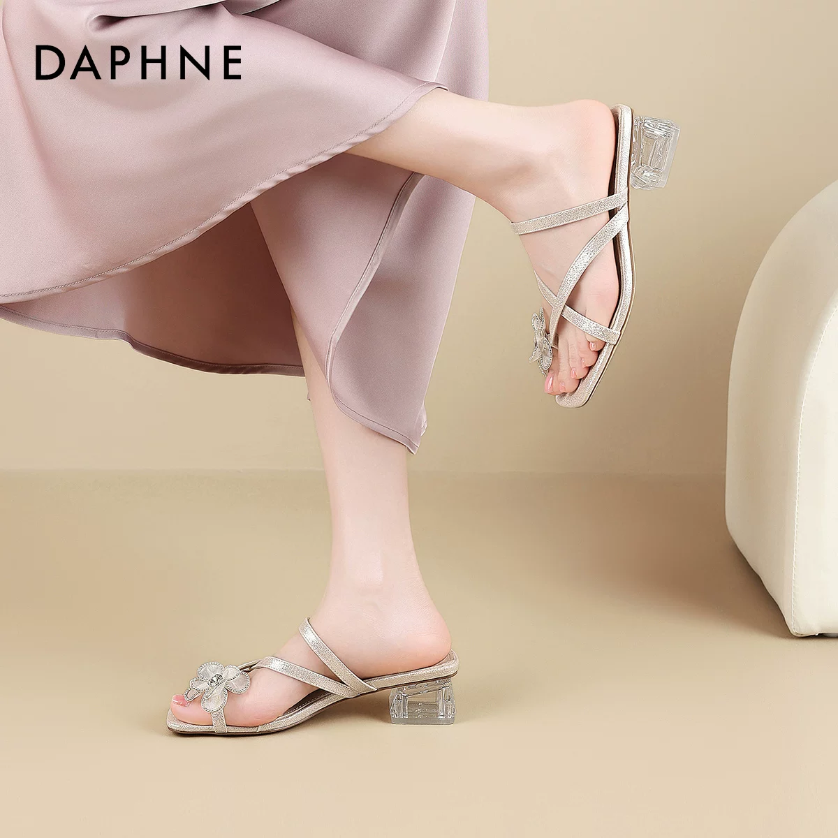 ¥59 达芙妮夏季中跟凉鞋 时尚休闲百搭气质女鞋 229