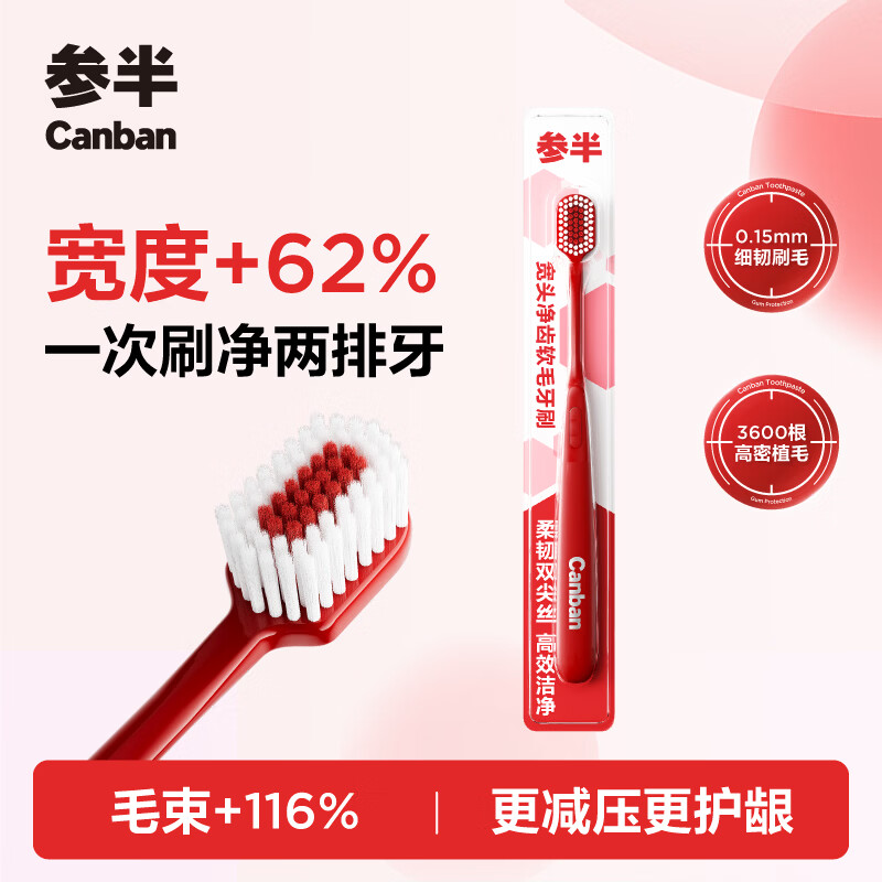 参半轻灵宽头软毛牙刷3支装 最终到手价4.9元