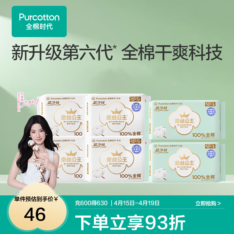 全棉时代卫生巾组合46片到手36元,折合0.78元/片