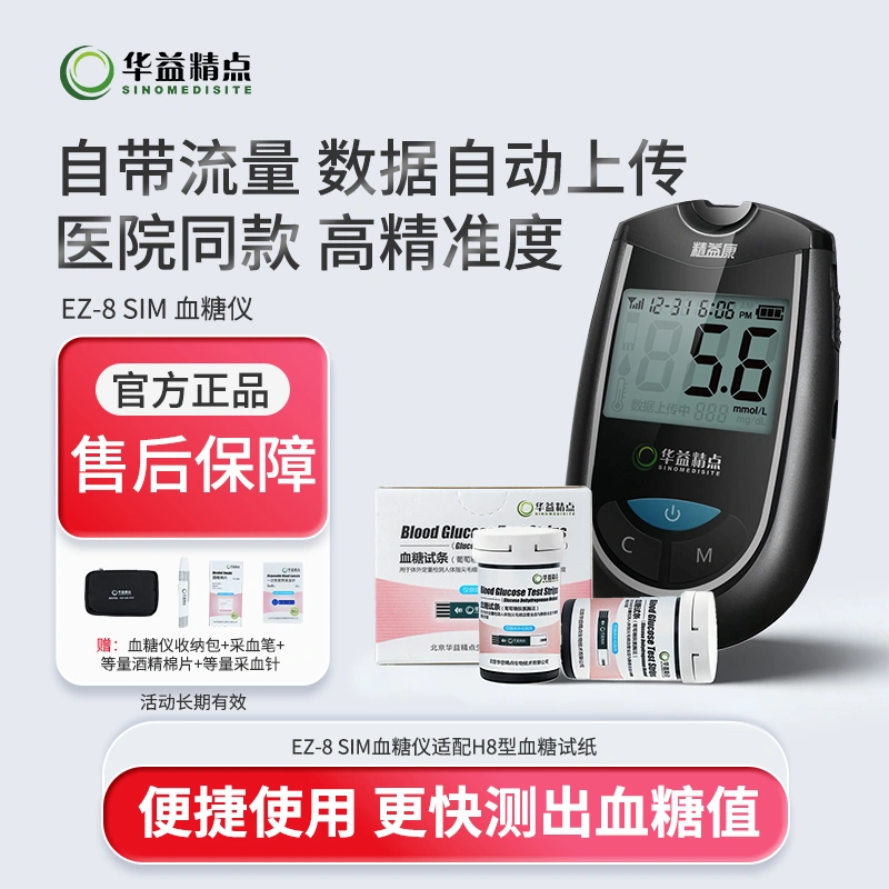 ¥419 华益精点EZ-8 SIM血糖仪 医用家用高精准度低痛糖尿病测血糖检测仪 EZ-8 SIM血糖仪+100试条套装 439