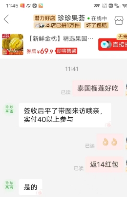 泰国金枕巴掌榴莲2-2.5斤,最终到手55.9元