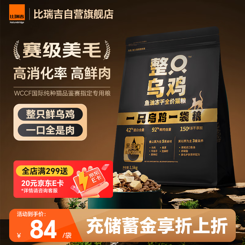 比瑞吉整只乌鸡冻干猫粮1.5kg PLUS首购仅需65元
