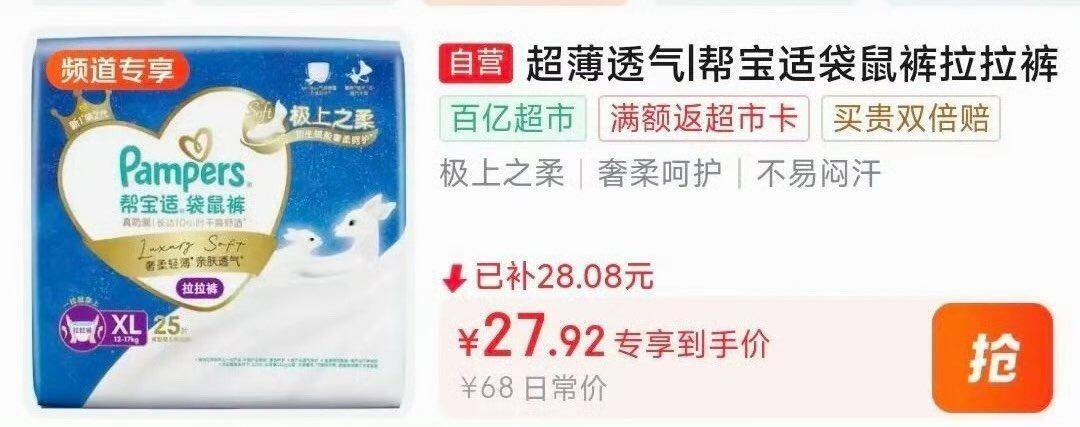京东秒杀得宝婴儿乳霜纸3包到手1.9元