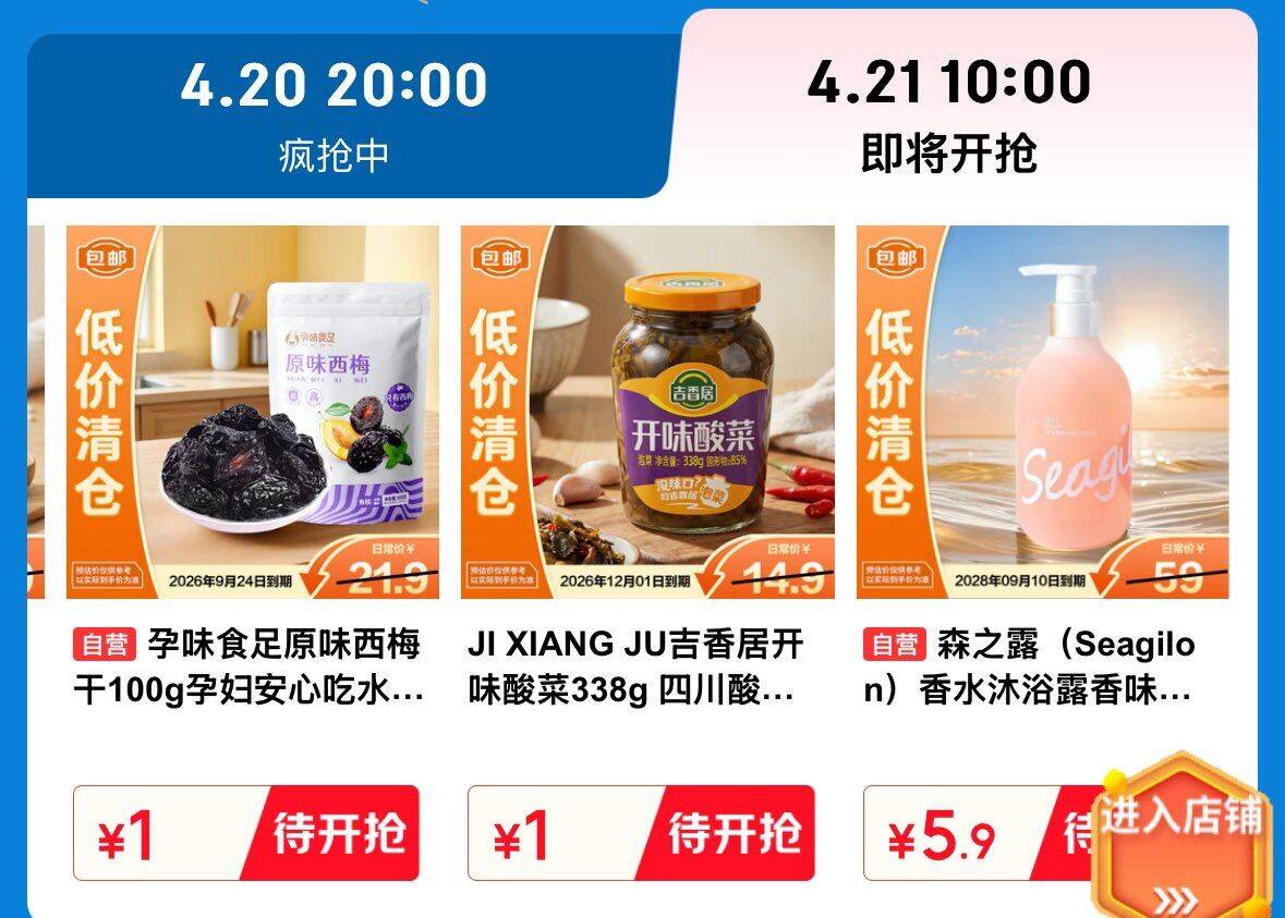 京东10点临期食品秒杀:仅需1元抢美味