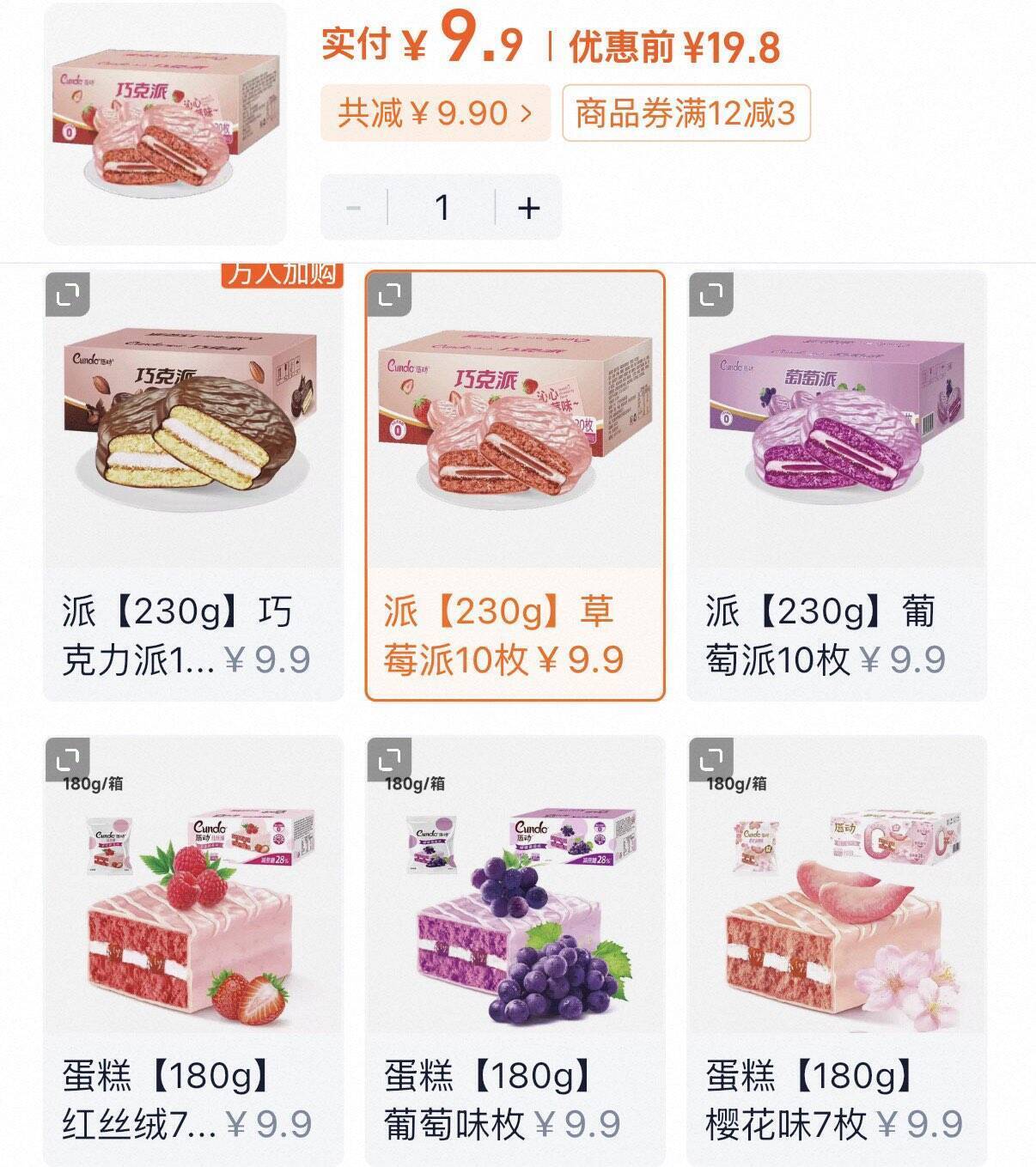 唇动夹心蛋糕派230g 9元/箱,多口味任选2箱仅19元