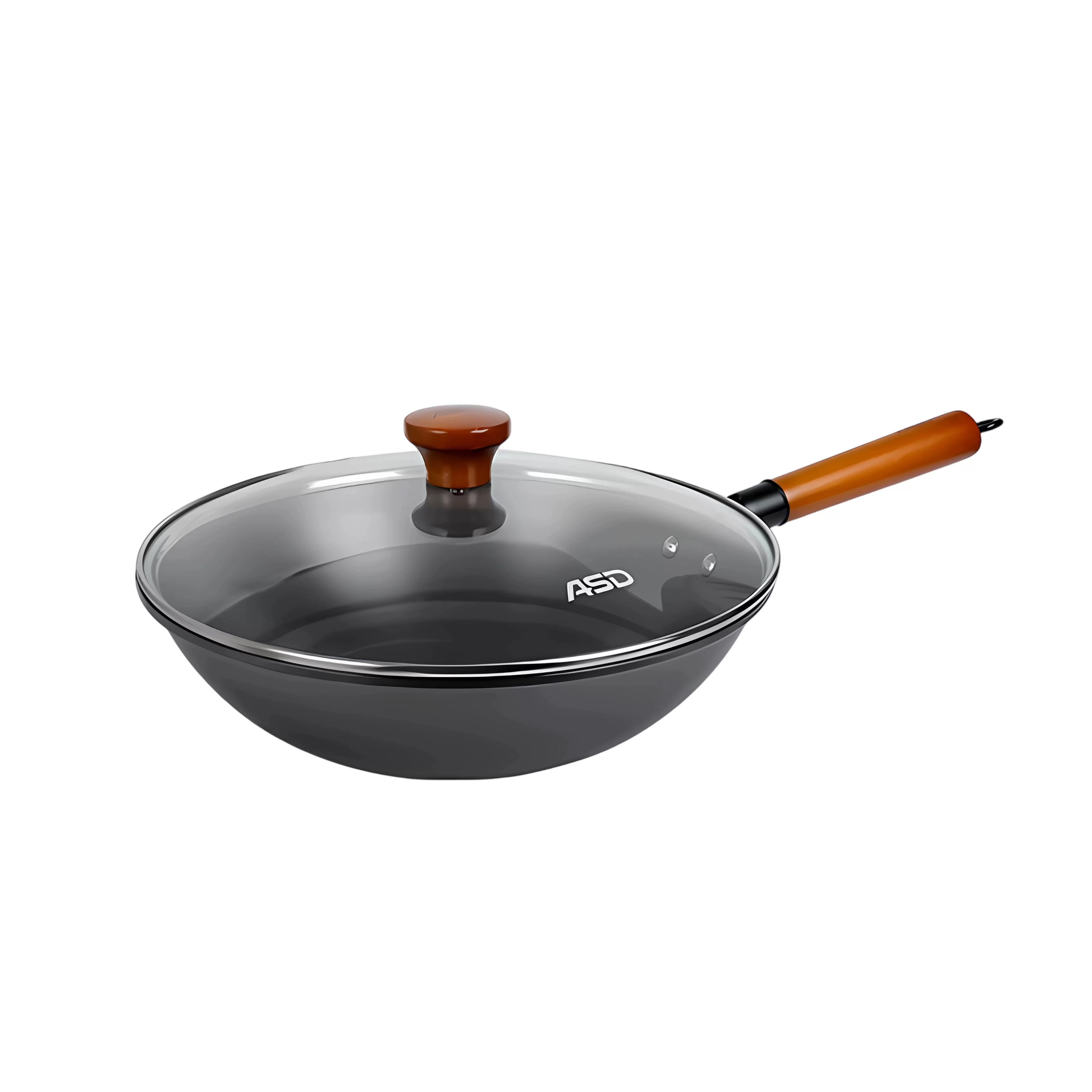 ¥59 爱仕达无涂层高纯铁炒锅带盖32cm 159