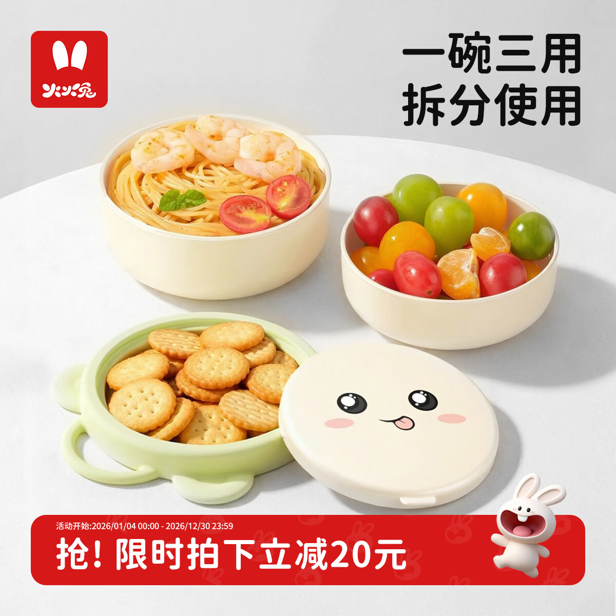 ¥41.4 火火兔儿童餐盘婴儿辅食碗宝宝碗便外出携餐具套装叉勺婴幼儿辅食碗 辅食碗五件套【大碗+小碗+餐盘+叉+勺】 79.4