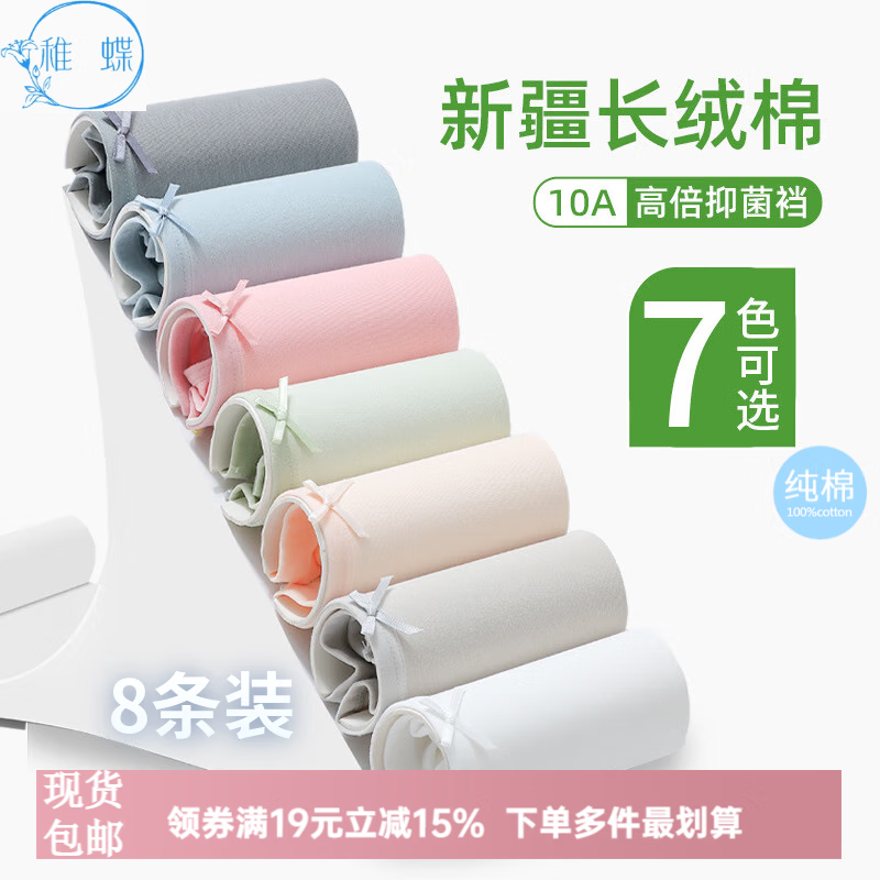 ¥32 稚蝶内裤女全棉 40支女士纯棉内裤 加大版三角裤女裆部10A抑菌长绒棉 混色 买一发 8条 XL 170-175CM 120-140斤 52