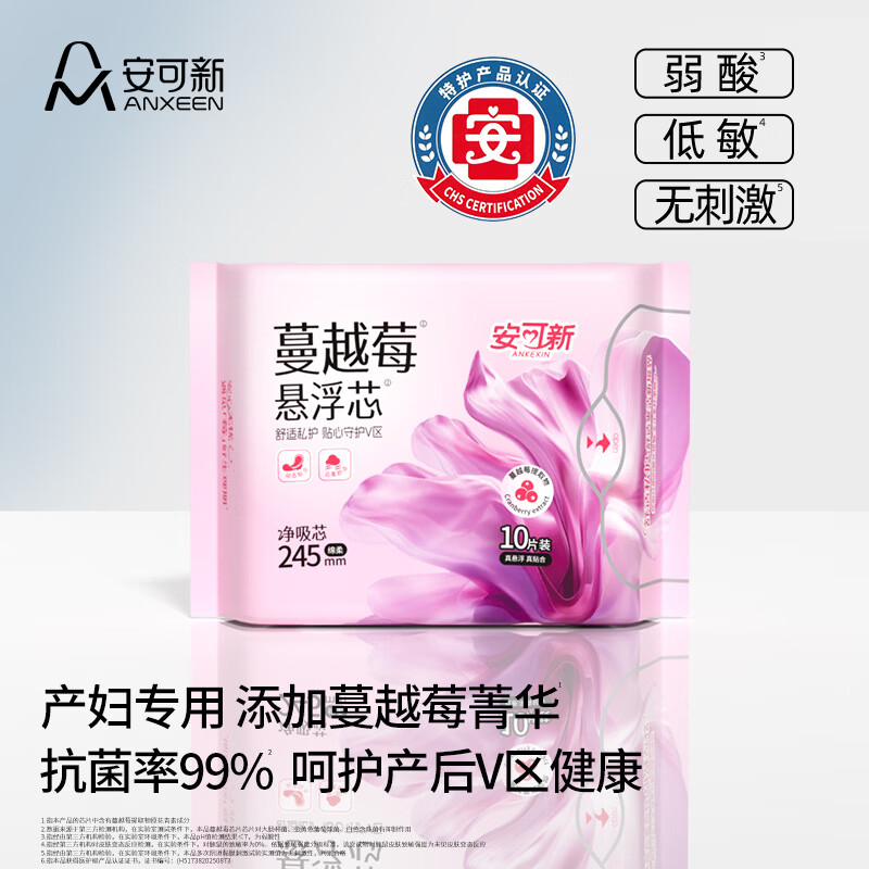 自营安可新蔓越莓卫生巾任选1款拍2件到手14.9元