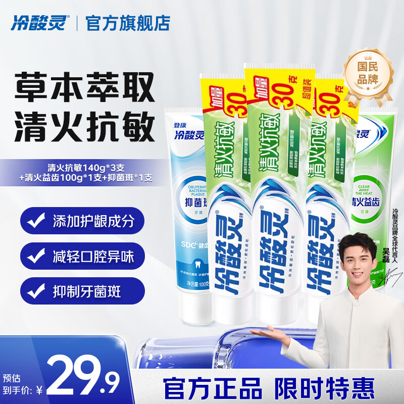 冷酸灵牙膏5支装620g,到手价仅21.9元