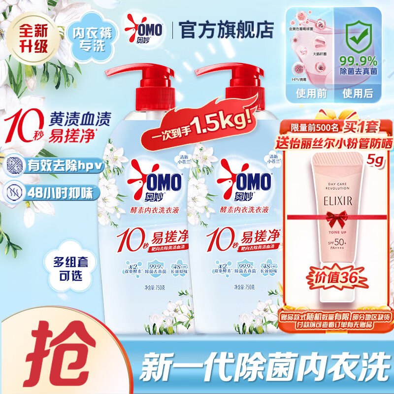 奥妙酵素内衣洗液750g*2瓶 首购叠加Plus仅54元