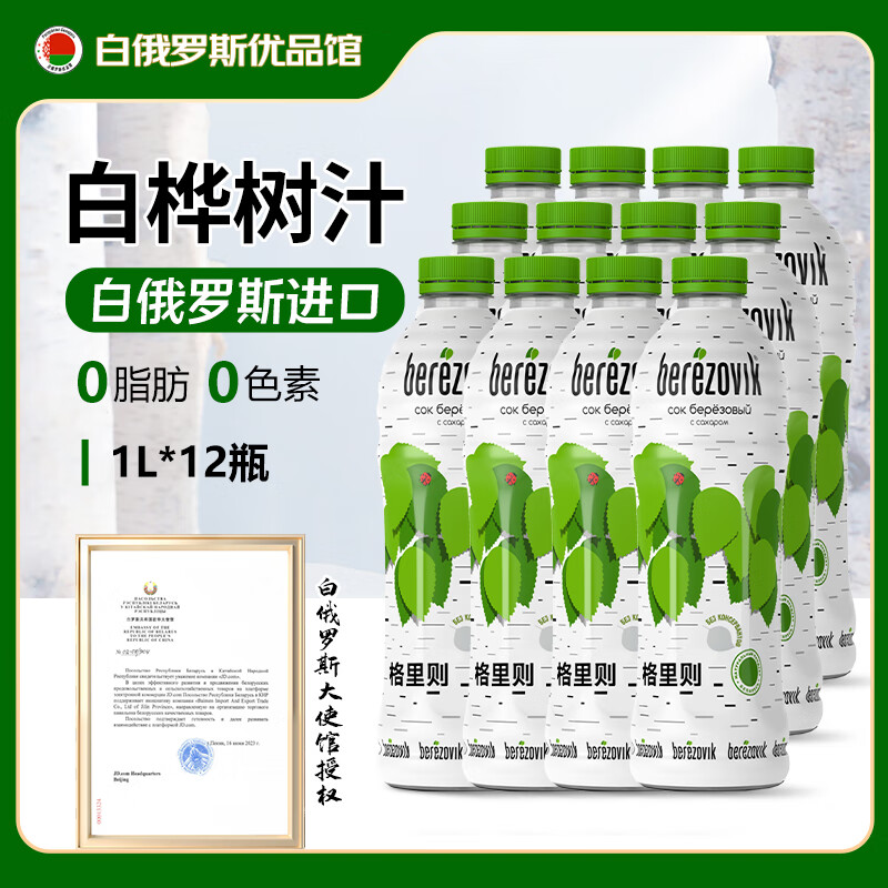 ¥129.9 格里则白桦树汁白俄罗斯进口0脂肪0色素桦树提取汁液健康营养植物饮品 白桦树汁1L*12瓶【整箱】 149.9