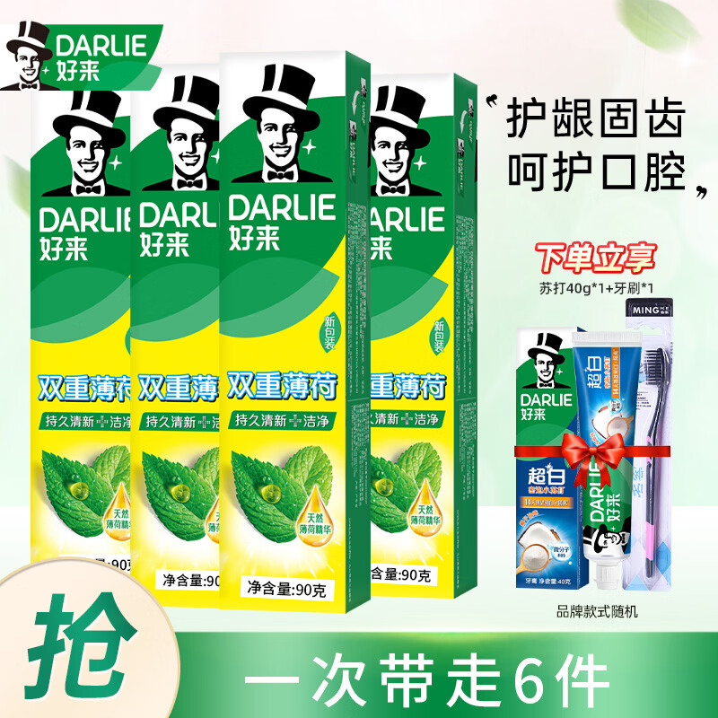 ¥31.9 好来(DARLIE)原黑人牙膏清新口气含氟防蛀牙膏家庭组合装成人 双重薄荷90g*4 39.9