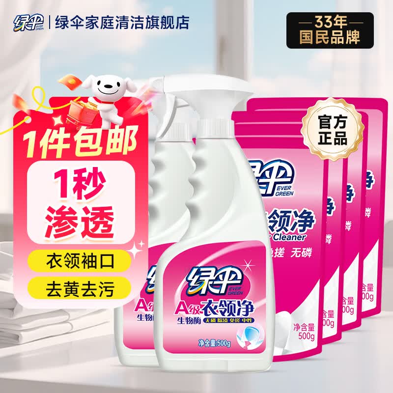 绿伞衣领净500g*2瓶+4袋装,到手价39.8元