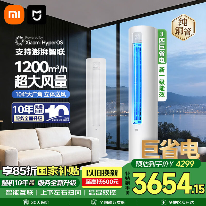 小米3匹空调巨省电到手价3739元