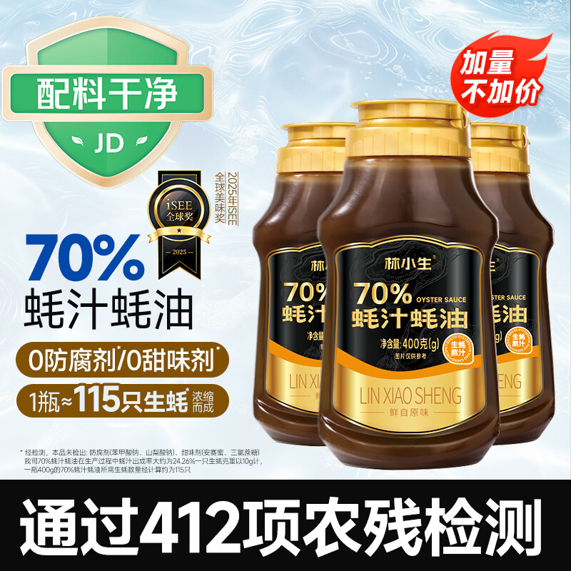 林小生70%蚝汁蚝油400g*3件,到手价399.2元