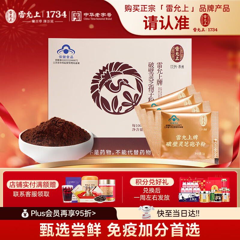 雷允上破壁灵芝孢子粉4g母亲节特惠 到手价10元