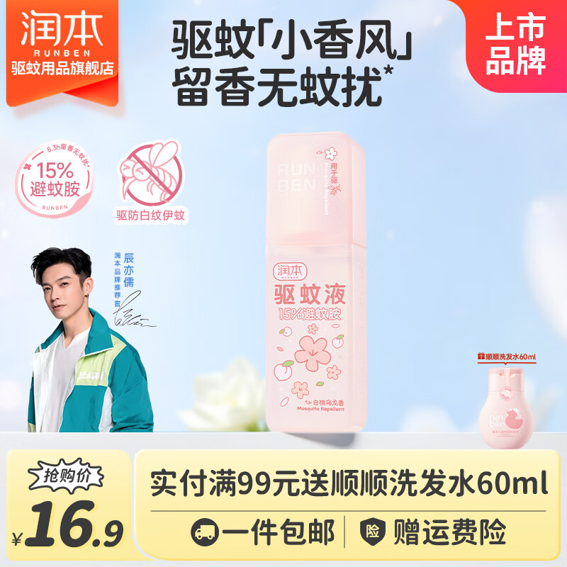 润本驱蚊香氛喷雾75ml,9.9元到手