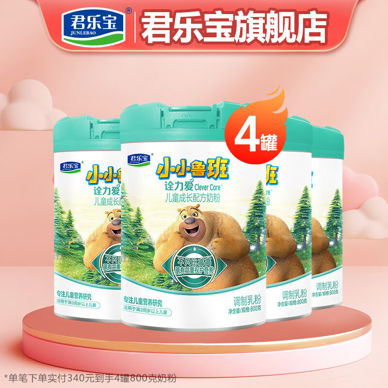 君乐宝小小鲁班4段奶粉800g*4罐,到手价仅300元