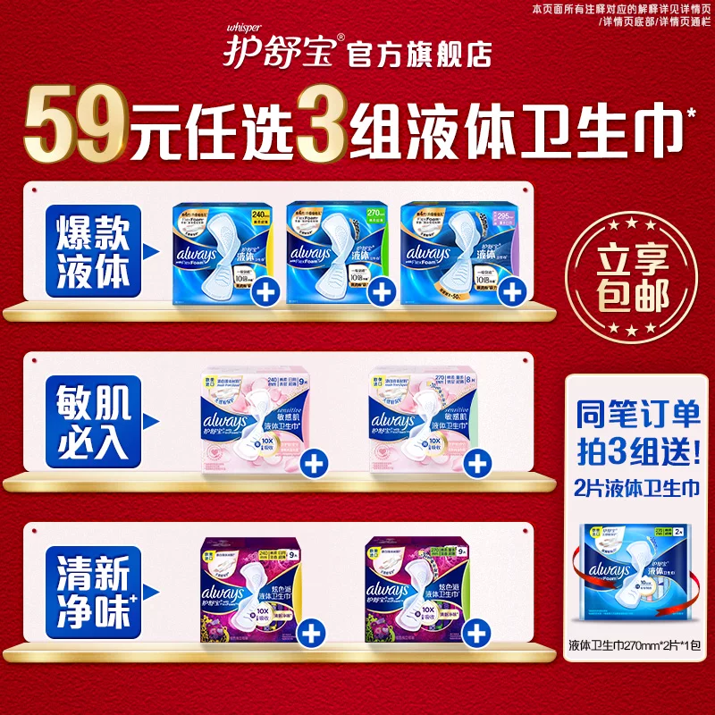 ¥59 59任选3组!护舒宝液体卫生巾护垫安睡裤 102