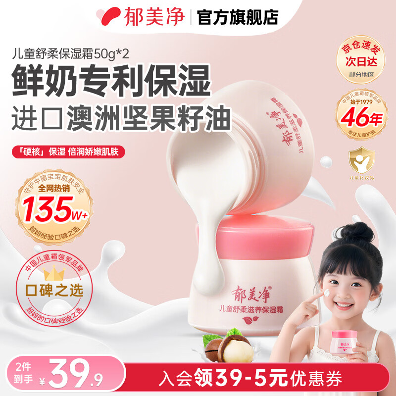 ¥19.9 郁美净儿童霜舒柔保湿霜春夏保湿补水宝宝面霜 儿童舒柔滋养保湿霜50g*2 39.9