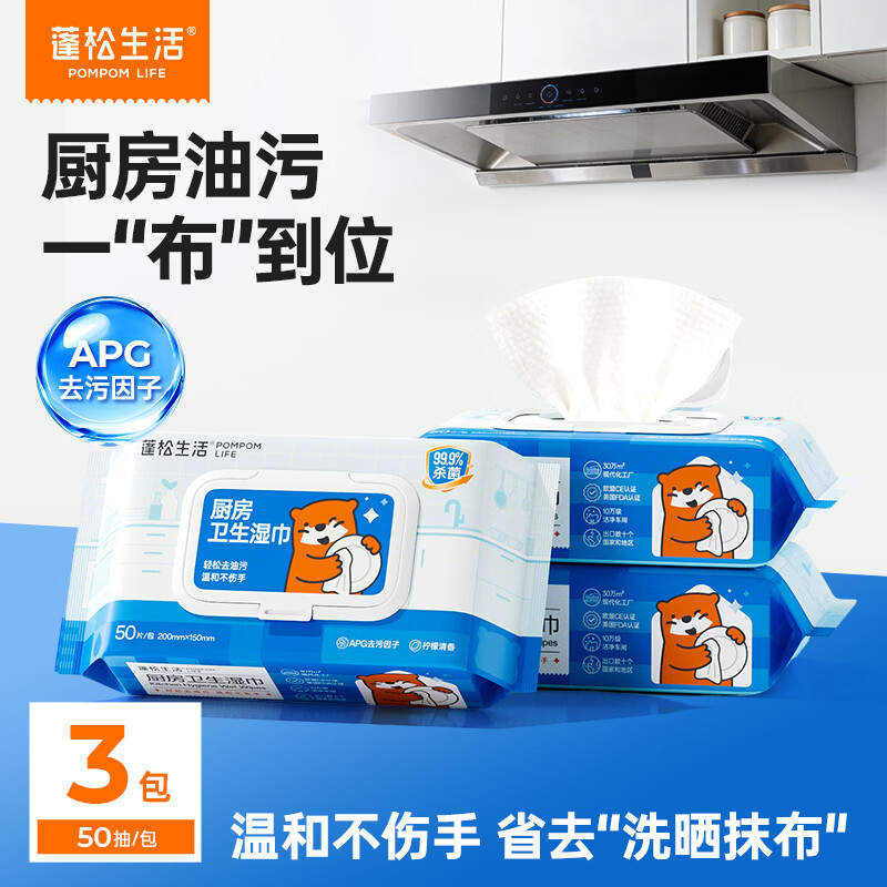 蓬松生活厨房湿巾50抽*3包 最终到手价9.9元