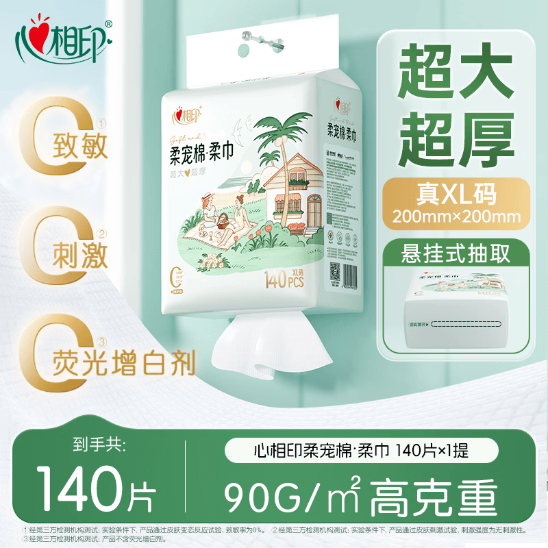 心相印柔宠棉洗脸巾140片悬挂式,叠加优惠后到手价仅0.15元/件